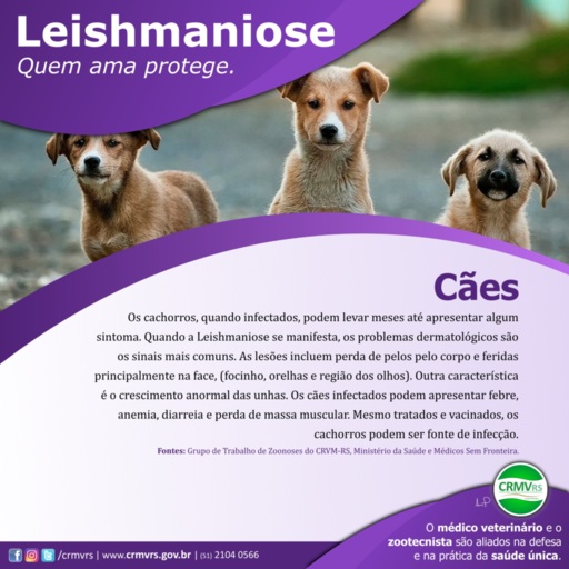 Casos recentes de Leishmaniose humana acenderam um alerta na capital gaúcha. As ocorrências foram confirmadas pela Secretaria Municipal de Saúde (SMS), que identificou o vínculo epidemiológico em Porto Alegre. Desde 2016, já são 15 casos registrados. Por se tratar de uma doença grave, sem cura e uma ameaça à saúde pública, o Conselho Regional de Medicina Veterinária do Rio Grande do Sul (CRMV-RS) lança a campanha Leishmaniose: quem ama protege, com o objetivo de conscientizar a população sobre o tema, além de abordar os cuidados necessários, prevenção e tratamento.