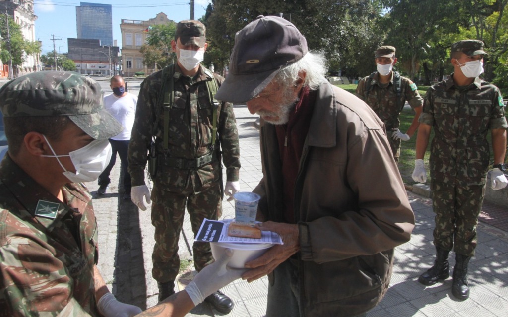Marmitas, copos de água e sabonetes foram distribuídos na manhã deste domingo
